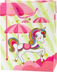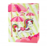 Tato dárková taška s roztomilým motivem jednorožce je skvělou volbou pro děti i dospělé. Je vyrobena z odolného papíru, který bezpečně udrží knihy, kosmetiku, hračky či jiné drobnosti. Šňůrkové ucho laděné k designu usnadňuje pohodlné nošení.