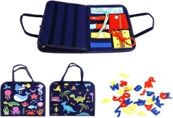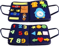 Objevte hravou a vzdělávací zábavu se senzomotorickou knihou, která rozvíjí dětské dovednosti přirozenou cestou. Díky různorodým aktivitám jako jsou knoflíky, přezky, zipy, suché zipy či tkaničky si děti procvičí jemnou motoriku, logické myšlení, soustředění i smyslové vnímání. Téma vodního a dinosauřího světa podněcuje fantazii a zvídavost, zatímco měkké a lehké provedení zajišťuje bezpečné a pohodlné používání doma i na cestách.