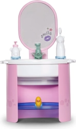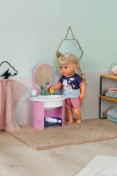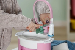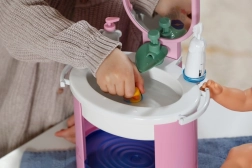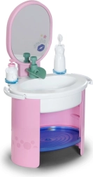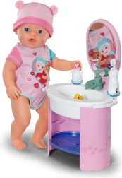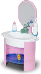 Umyvadlo Baby Born přináší dětem autentickou hru na koupelnu bez potřeby baterií. Díky ručnímu pumpování teče do umyvadla skutečná voda, kterou pomáhá udržet veselý špunt Berta v podobě kačenky. Děti tak mohou trénovat hygienické návyky své panenky zábavnou a bezpečnou formou.