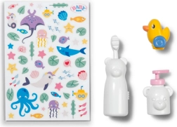 Součástí je kartáček na zuby s mechanickou vibrační funkcí pro ještě realističtější zážitek a praktický dávkovač mýdla. Umyvadlo lze přizpůsobit pomocí pestrých samolepek s motivem podmořského světa, které rozvíjejí kreativitu a fantazii.