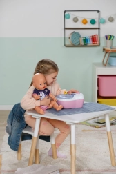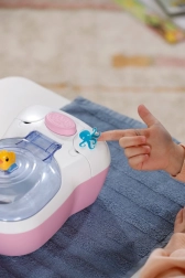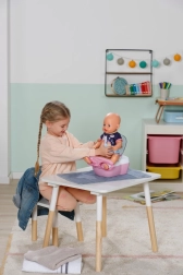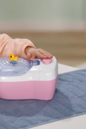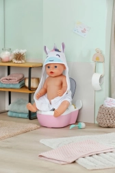 Interaktivní toaleta BABY born promění každodenní péči o panenku v zábavný rituál. Jakmile panenka usedne na prkýnko, ozvou se realistické šplouchající zvuky, a pokud zůstane sedět déle, spustí se vtipná melodie a následně zvuk spláchnutí. To vše motivuje děti k hravému nácviku hygienických návyků.