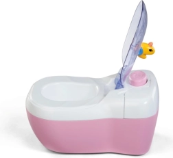 Zpestřete trénink na nočník s interaktivní toaletou BABY born, která přináší legrační zvuky, vtipné melodie a kouzlení s vodou. Díky obrázkům čůrání a kakání, praktickým přihrádkám a WC štětce s čistícím přípravkem se děti zábavnou formou učí hygieně.