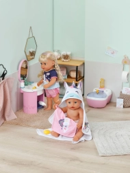 Ručníky jsou vyrobeny z měkkého a příjemného materiálu, který je šetrný k dětským ručkám i oblíbeným panenkám. Sada je kompatibilní s panenkami 36 cm a 43 cm, takže skvěle doplní vaše příslušenství pro každodenní hraní.