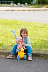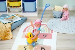 Strkadlo Berta je ideální doplněk pro malé pečovatelky a pečovatele. Díky odnímatelné a nastavitelné vodicí tyči se snadno přizpůsobí výšce dítěte a poskytne pohodlné vedení při jízdě. Nastavitelné opěradlo a upevňovací madlo zajistí, že se na sedátko pohodlně vejde každá panenka BABY BORN.