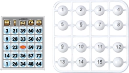 - Losovací stroj, 80 kuliček, 20 karet, tabule na vylosovaná čísla, instrukce