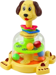Tato interaktivní hračka ve tvaru roztomilého pejska přináší dynamický efekt vířících kuliček, které upoutají pozornost dětí a motivují je k aktivní hře. Jednoduché ovládání stiskem hlavičky rozvíjí sílu a přesnost úchopu a zároveň učí příčinu a následek.