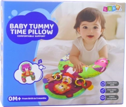 Podpůrný polštář pro miminko je navržen tak, aby podpořil správný vývoj od prvních dnů života. Ergonomický tvar ulehčuje polohu na bříšku, což přirozeně posiluje svaly a připravuje dítě na další milníky jako je sezení či lezení. Měkké a příjemné materiály spolu s kontrastní barevností podněcují zrak, sluch i hmat.