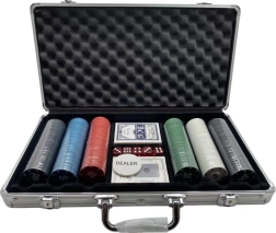 Užijte si atmosféru kasina kdekoliv s tímto profesionálním pokerovým setem. Obsahuje 500 žetonů ve čtyřech barvách, dvě sady hracích karet a pět červených kostek. Vše je uloženo v odolném hliníkovém kufříku s rukojetí a uzamykáním pro bezpečný transport.