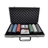Kompletní pokerový set 500 dílů pro domácí turnaje i společenské večery. Kvalitní žetony 11,5 g o průměru 40 mm, 2 balíčky karet a 5 kostek v pevném hliníkovém kufříku pro pohodlné uložení a přenášení – pocit jako v opravdovém kasinu.
