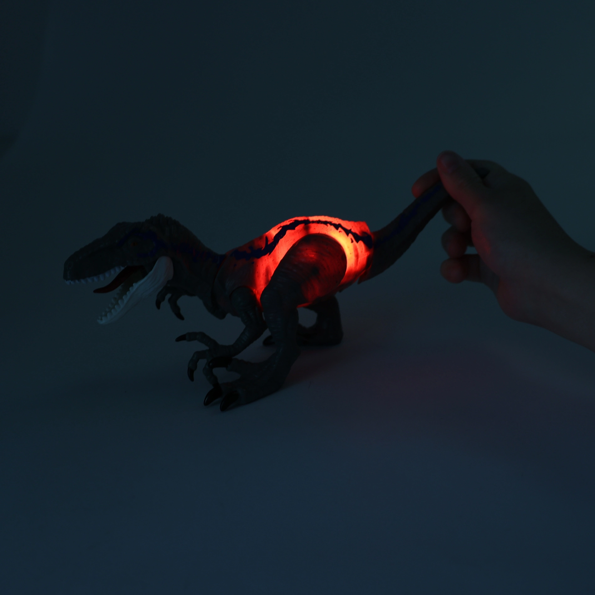 Tento detailně zpracovaný dinosaurus Velociraptor přináší dětem autentický zážitek z pravěku. Při zatlačení na ocas spustí hrozivý řev a zároveň se rozsvítí světelný efekt, který umocňuje dramatickou atmosféru hry. Stiskem hlavy se otevře tlama a rozhýbou se přední končetiny, takže akce nikdy nekončí.