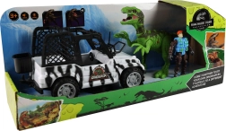 Vydej se do světa prehistorického dobrodružství. Terénní auto o délce 21 cm jezdí na volný chod, takže je ideální pro rychlé honičky v pokoji i na zahradě. Realistický dinosaurus zaujme svítícími efekty a řevem, které se aktivují stisknutím tlačítka, a jeho pohyblivé končetiny přidávají na autentičnosti.