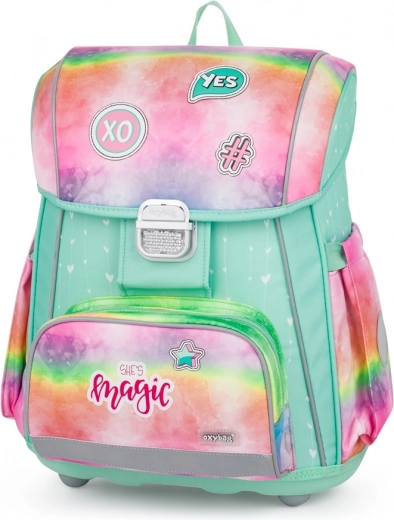 Díky jedné prostorné komoře se do aktovky snadno vejdou všechny školní pomůcky pro 1.–2. třídu. Přední kapsička je ideální na svačinu a drobnosti. Bezpečnost zvyšuje kovová přezka s reflexní odrazkou a řada dalších reflexních prvků, které zlepšují viditelnost dítěte za šera i za snížené viditelnosti.