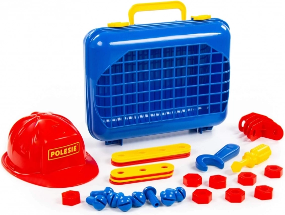 Komplet je uložen v odolném kufříku, který se snadno přenáší a udržuje pořádek. Ideální jako dárek pro malé nadšence do techniky a stavebních her.
