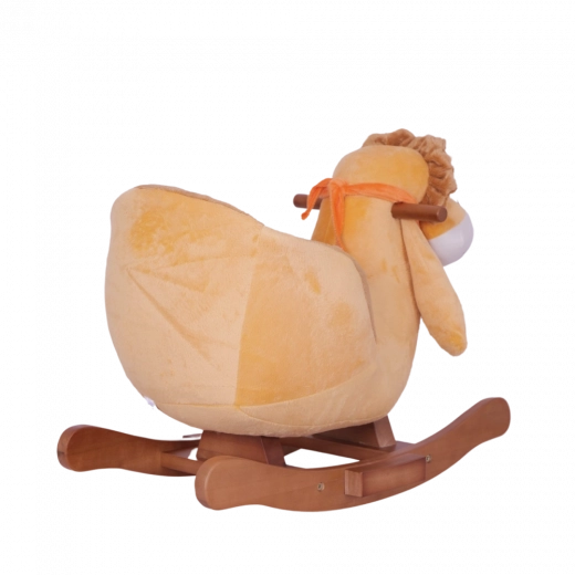 Toto houpací hračkové zvířátko je navržené pro pohodlné a bezpečné houpání. Díky pevné dřevěné základně, měkké plyšové výplni a ergonomickému sedátku s opěrkami na nohy si děti užijí spoustu radosti, zatímco si přirozeně rozvíjejí pohybové dovednosti.