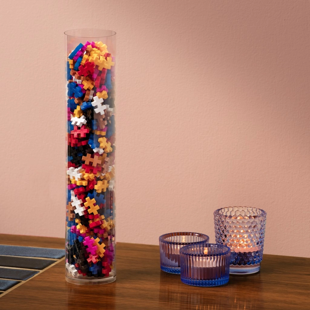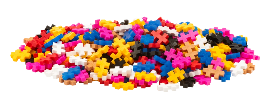 Dílky ve tvaru plus se snadno propojují ze všech stran, takže z nich postavíte jak ploché mozaiky, tak prostorové modely. Materiál z recyklovaného plastu je odolný a bezpečný a kompaktní balení je skvělé na cesty i do dětského pokoje.