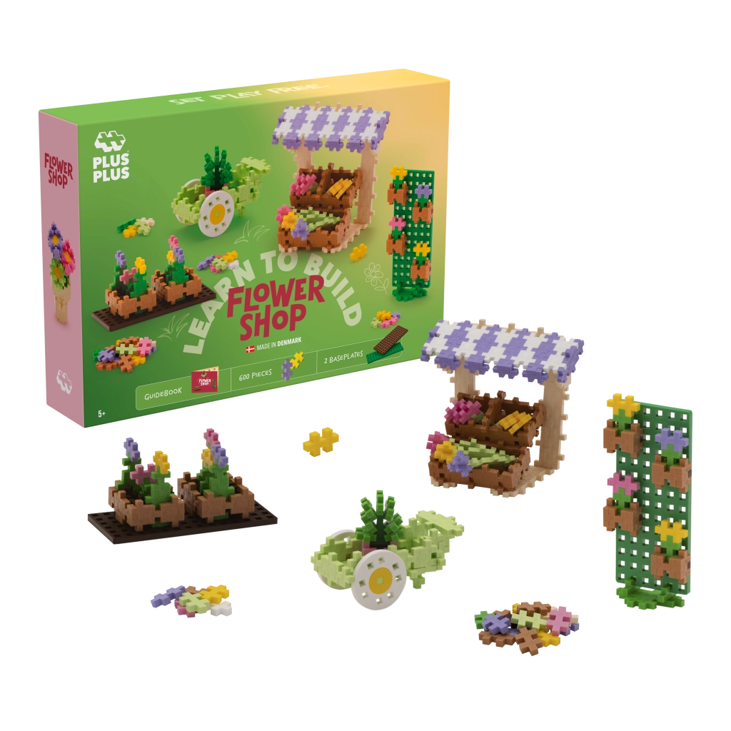 Stavebnice Plus-Plus Nauč se stavět Květinářství přináší dětem nekonečné možnosti tvoření. Díky 600 dílkům a dvěma podložkám zvládnou i začátečníci krok za krokem postavit barevný stánek, pojízdný vozíček nebo působivé květinové dekorace. Jedinečný tvar dílků podporuje jemnou motoriku, prostorovou představivost a rozvoj kreativity.