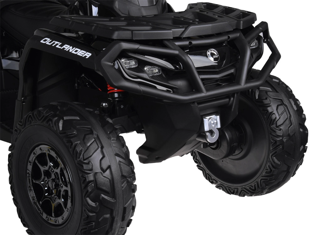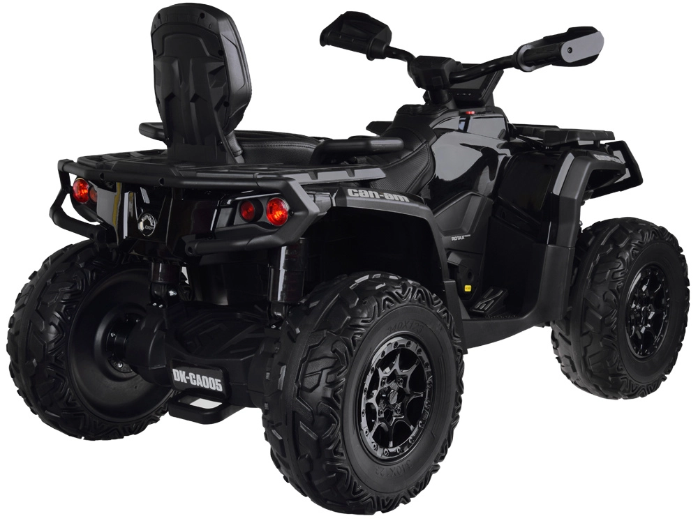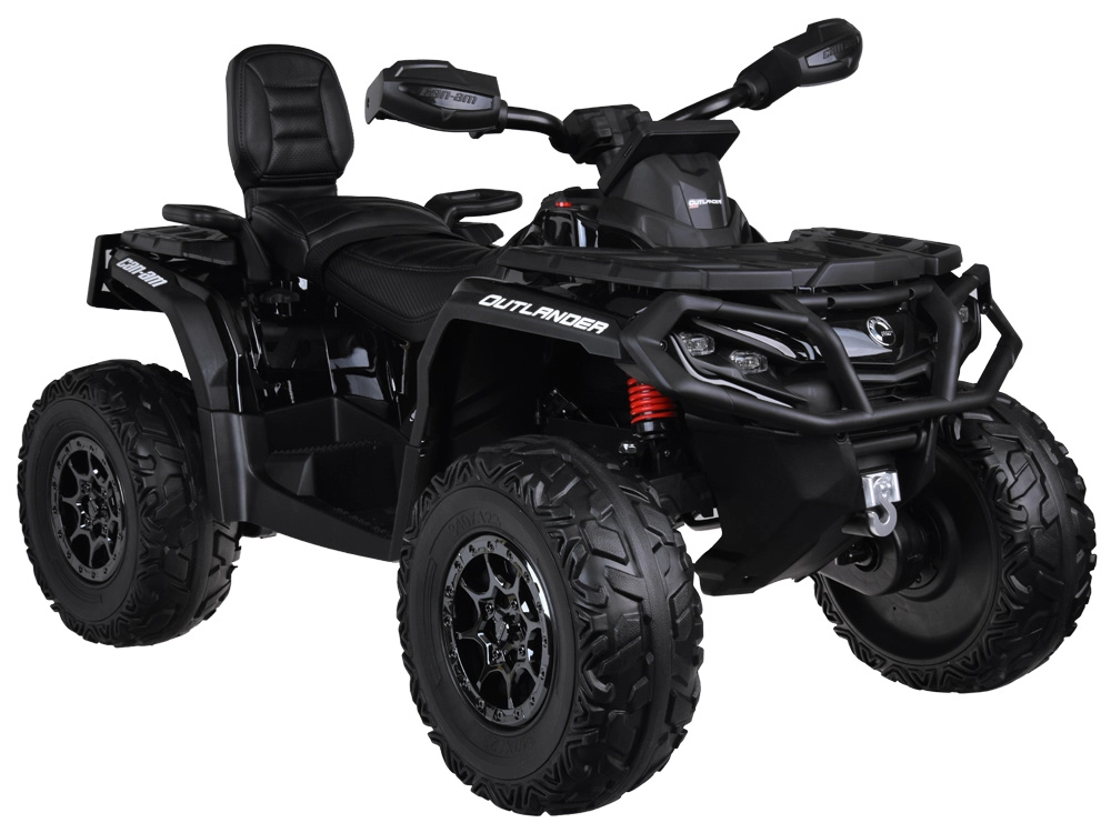 Robustní dětský quad CAN-AM Outlander je stvořen pro dobrodružství. Čtyři motory 200 W (celkem 800 W) a volitelný pohon 2 nebo 4 kol si poradí s parkovými cestičkami i lehkým terénem. Měkká kola EVA, zadní odpružení a plynulý start zajišťují komfortní a jistou jízdu, zatímco dvoumístné sedadlo z eko kůže s pásy a madly pro spolujezdce dbá na bezpečí.