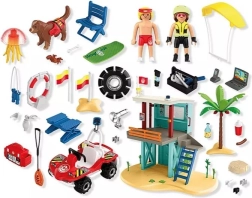 - záchranná věž (2 podlaží), plážové buggy, záchranář, pes záchranář, kitesurfer, medúza, krab, záchranné prkno, nářadí, příslušenství
