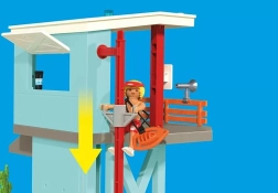 Tento detailně zpracovaný set přináší dvojpodlažní záchrannou věž s rychlým sjezdem po tyči, plně vybaveným stanovištěm záchranáře a spodním servisním koutkem s nářadím. Nechybí plážové buggy pro akce dál od věže, záchranné prkno a věrný záchranářský pes v vestě.