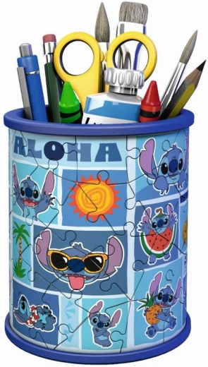 Stylový stojan na tužky s oblíbenou postavičkou Stitch potěší malé i velké fanoušky. Skládání z plastových puzzle dílků je snadné a zábavné, výsledkem je stabilní a lehký organizér na psací potřeby.