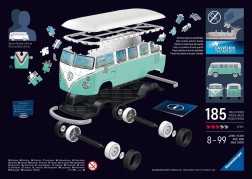 Objevte nový rozměr skládání s 3D puzzlem VW T1 Bulli. Pevné, číslované plastové dílky do sebe zapadají s jistotou a vytvoří samostatně stojící model legendárního kempru. Není potřeba žádné lepidlo – konstrukce je stabilní a čistá.