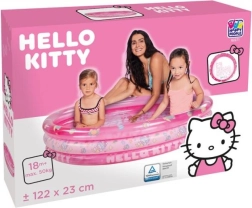 Nafukovací bazének Hello Kitty je skvělou volbou pro letní hraní a osvěžení. Díky třem samostatným kruhům drží tvar, je stabilní a rychle připravený k použití. Průhledné růžové stěny s ikonickým motivem a designové dno dodají každému koupání hravý styl.
