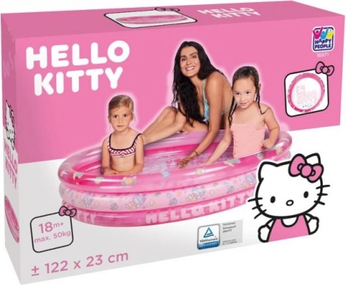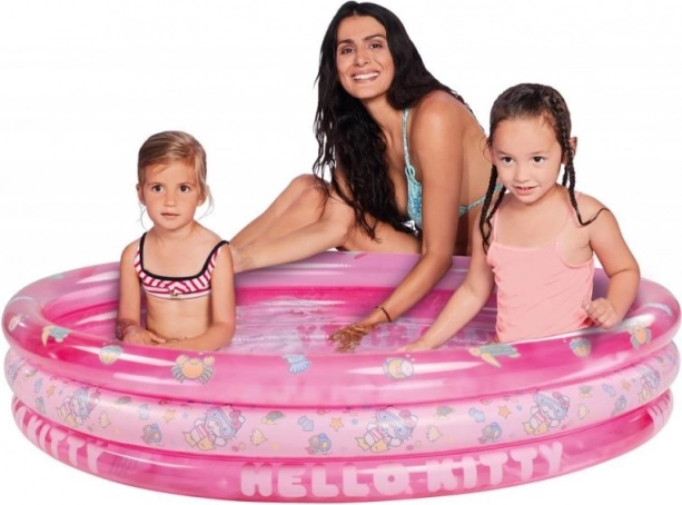 Růžový nafukovací bazén Hello Kitty se 3 kruhy. Stabilní konstrukce, stylový potisk dna, rozměry cca 122×23 cm. Ideální pro dětské letní osvěžení.