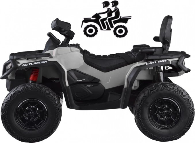 Robustní dětská čtyřkolka CAN-AM OUTLANDER 4x4 24V je navržena pro malé nadšence jízdy v terénu. Čtyři motory 200 W (celkem 800 W) a volitelný pohon 2 nebo 4 kol si poradí s parkovými cestičkami i lehkým terénem. Měkká kola EVA a zadní odpružení zajišťují tichou, plynulou a komfortní jízdu.