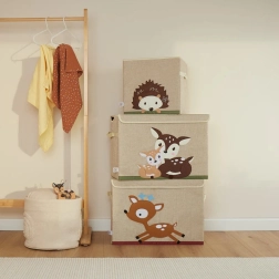Rozkošný design s motivem koloušků zútulní každý dětský pokoj a zároveň poskytne praktický prostor pro ukládání. Box je stabilní, ale lehký, takže ho děti i rodiče snadno přenesou. Skládací konstrukce šetří místo a víko se suchým zipem udrží obsah hezky skrytý.