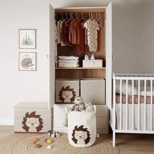 Úložný košík BIECO s roztomilým motivem ježka Piksi je ideální pro hračky, prádlo či dětské doplňky. Díky pevnému plátnu si skvěle drží tvar, přitom zůstává lehký a snadno přenositelný. Jednoduchý, nadčasový design se hodí do každého dětského pokoje i obývacího prostoru.