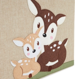 Vnější materiál v lněném vzhledu působí dekorativně, vnitřní výztuha z kartonu zajišťuje tvarovou stabilitu. Praktická kapacita kolem 33 litrů poskytne místo pro hračky, textil i další drobnosti. Údržba je snadná – stačí vlhký hadřík a jemné mýdlo.