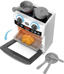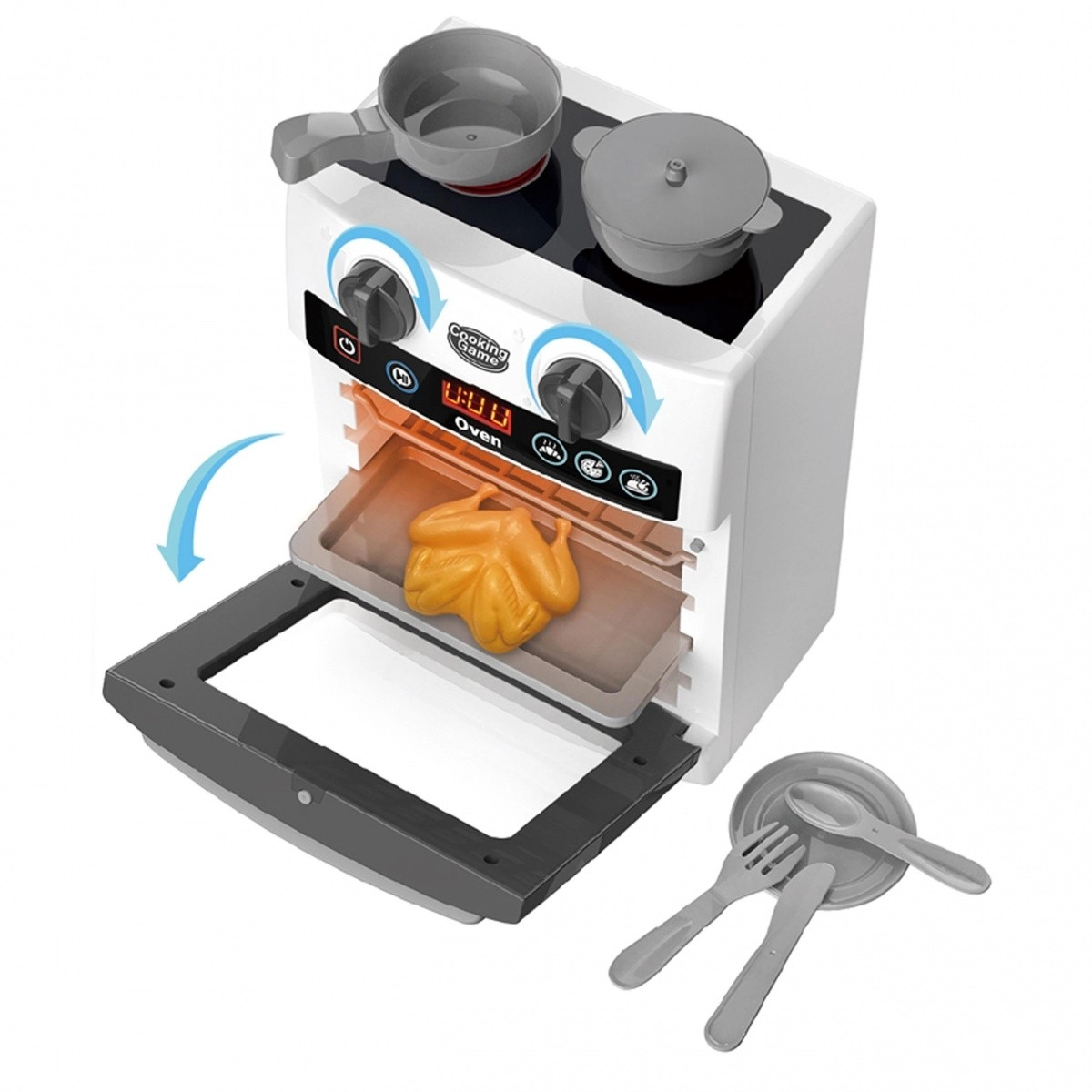 Objevte zábavnou dětskou kuchyňku s troubou, která svítí a vydává realistické zvuky jako skutečné spotřebiče. Stačí stisknout tlačítko ON, vybrat jeden ze tří režimů a hra může začít – trouba se rozsvítí a kuchyňka přehraje autentické zvukové efekty. Dva hořáky a dvě otočná tlačítka s klikáním umocní dojem skutečného vaření. Součástí je bohaté příslušenství pro tvorbu „lahodných“ pokrmů.