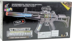 Tato dětská puška je vyrobena z kvalitního a odolného plastu, který snese intenzivní hraní a je bezpečný pro děti. Impozantní délka 73 cm umocňuje realistický vzhled a dává dětem pocit skutečné akce. Po stisknutí spouště se aktivují světelné a zvukové efekty, které dělají hru ještě atraktivnější.
