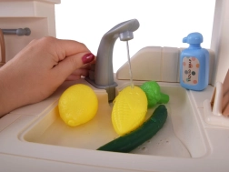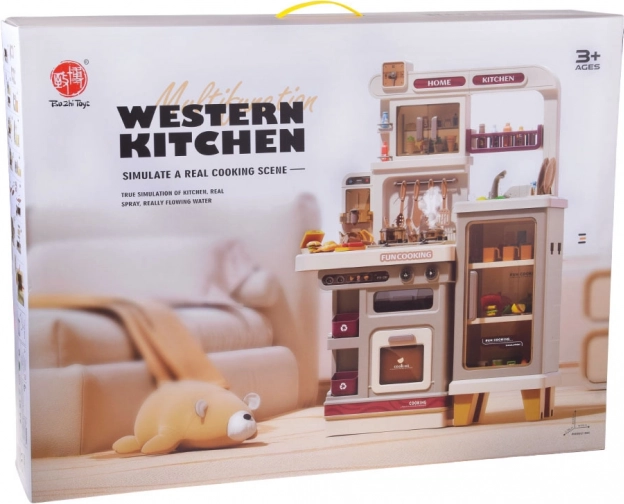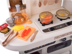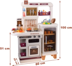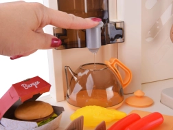 Tato prostorná interaktivní kuchyňka dětem umožní napodobit vaření, pečení i mytí nádobí. Díky párujícímu hořáku se světlem a zvukem vaření, otevírací troubě, policím a háčkům na náčiní i dispenzeru vody působí hra maximálně realisticky a zábavně.