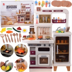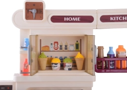 Velká plastová dětská kuchyňka v jemných béžových odstínech promění každý dětský pokoj v kulinářské studio. Nabízí světelné a zvukové efekty, realistický párující vařič, otevírací dvířka trouby a skříněk, funkční pumpovací kohoutek a bohaté příslušenství pro fantastickou hru na kuchaře.