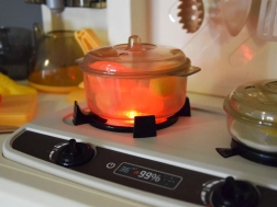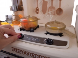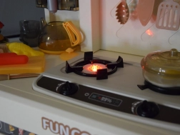 Interaktivní hořák nabízí dva režimy: zvuk vaření se světlem nebo efekt páry se zvukem. Otočné knoflíky a panel dodají hře realistický nádech.