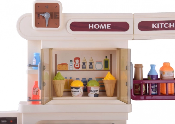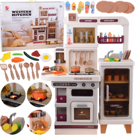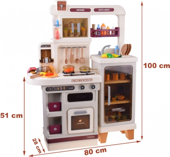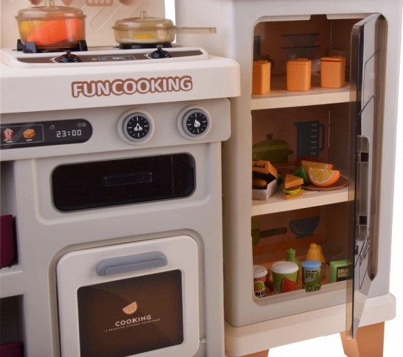 interaktivní béžová dětská kuchyňka s efekty světla, zvuku a páry