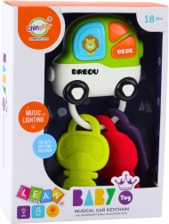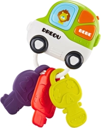 Interaktivní klíčky pro nejmenší kombinují světelné efekty, veselé zvuky, funkci chrastítka a měkké kousátko. Barevný ovladač ve tvaru autíčka se třemi velkými tlačítky podporuje jemnou motoriku, senzorický rozvoj a zabaví děti doma i na cestách.
