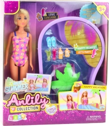 - lalka ANLILY 30 cm v plavkách, bazén s palmou a skluzavkou, sada doplňků