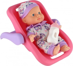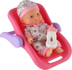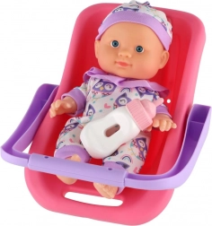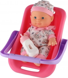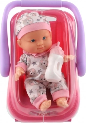 Roztomilé miminko s pevným plastovým tělíčkem v praktickém nosítku/autosedačce přináší hodiny fantastické role-play zábavy. Díky odolné konstrukci, snadnému uchopení a přiložené lahvičce pro krmení je ideální i pro menší děti. Na výběr jsou 2 barevné varianty.