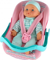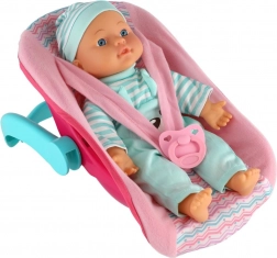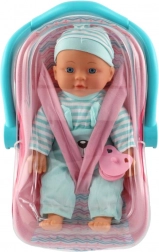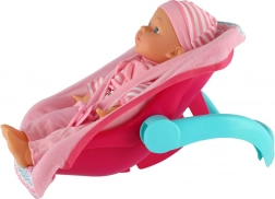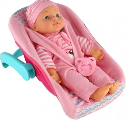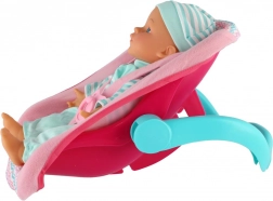 Součástí balení je praktické nosítko/autosedačka s pohodlným madlem a bezpečnostními pásky, které umožní panenku snadno přenášet, posadit nebo jemně pohoupat. Nechybí ani dudlík – ideální doplněk pro uklidnění a uspávání. Hra s panenkou podporuje rozvoj jemné motoriky, komunikace a empatie.