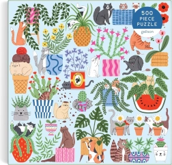 Užijte si relax s originálním čtvercovým puzzlem s motivem koček v květináčích. Balení obsahuje 500 dílků a předlohu pro snadnější skládání. Po složení má puzzle rozměr cca 51 × 51 cm – ideální velikost pro zarámování a vystavení.