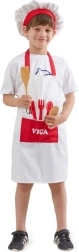 Stylový dětský kostým kuchaře pro malé gurmány ve věku 3–6 let. Sada obsahuje plášť a kuchařskou čepici, ideální pro hraní na profese, školky i domácí kuchyňské dobrodružství. Plášť o rozměrech cca 45,5 × 53 cm je pohodlný a snadno se obléká.