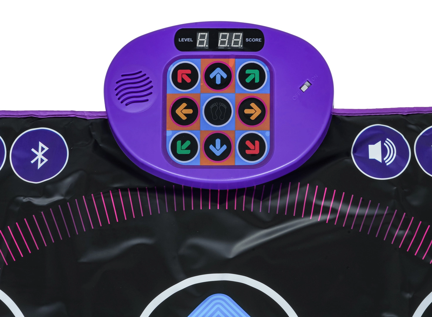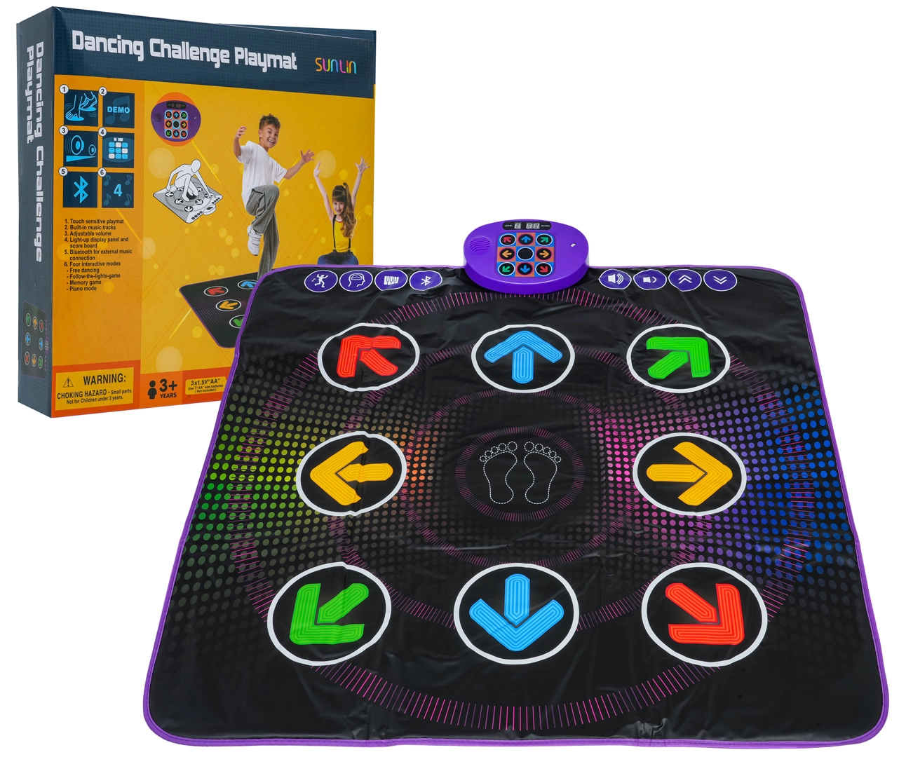 Vybrat si můžete z více režimů – sledování šipek, paměťový režim nebo režim „piano“, ve kterém vytváříte tóny vlastními kroky. Přes Bluetooth přehrajete oblíbené skladby, nastavíte hlasitost i obtížnost a přizpůsobíte zábavu věku i dovednostem dítěte. Ideální pro společné trávení času a rozvoj rytmu i koordinace.