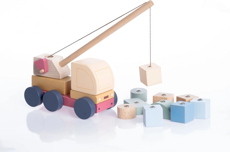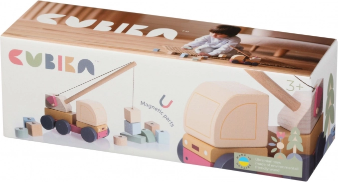 Objevte kvalitní dřevěnou hračku z nové pastelové kolekce CUBIKA: autojeřáb s magnetem a 14 barevnými díly. Děti mohou zvedat a přesouvat náklad pomocí magnetu, rozvíjejí tak jemnou motoriku, logické myšlení a kreativitu. Vyrobeno z certifikovaného javoru a buku, barvy na vodní bázi jsou bezpečné a bez zápachu. Vyrobeno v Evropě, splňuje normu EN 71 a má certifikát TÜV.