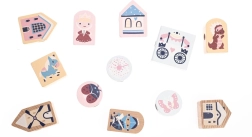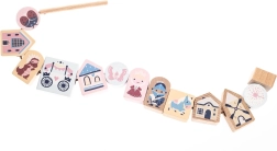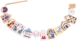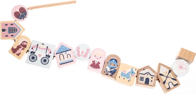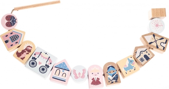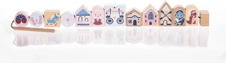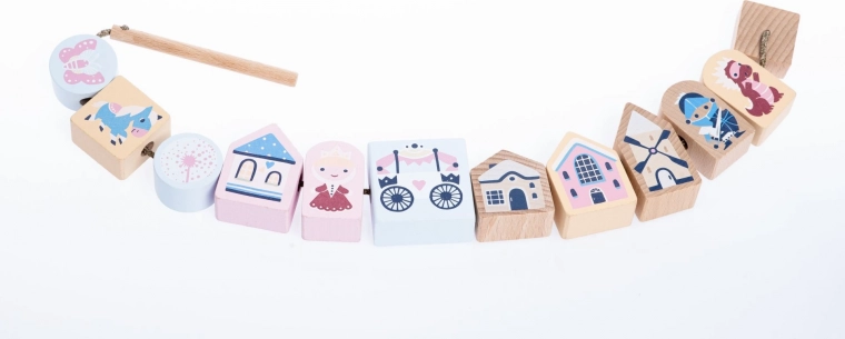 Objevte kouzelný navlékací set v jemných pastelových barvách od značky CUBIKA, který rozvíjí jemnou motoriku, trpělivost, paměť a logické myšlení. Sada obsahuje 12 dřevěných prvků s pohádkovými motivy, 45cm tkaničku s dřevěným kolíčkem a 8 předloh pro zábavné navlékání. Vyrobeno z kvalitního javoru a buku s bezpečnými barvami na vodní bázi. Certifikace TÜV, norma EN 71, vyrobeno v Evropě.