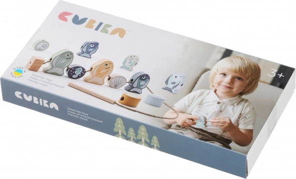 Pastelový navlékací set Cubika s motivem ryb a mořských živočichů je ideální didaktická hračka pro děti, které se učí koordinaci ruky a oka. Díky pečlivému zpracování z tvrdého dřeva a příjemným barvám na vodní bázi je hračka odolná, bezpečná a láká ke kreativnímu hraní. Děti mohou navlékat podle předloh nebo trénovat paměť a pořadí prvků.