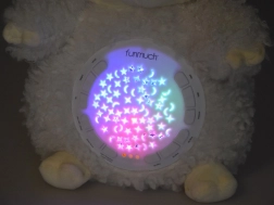 Tato hebká, přítulná ovečka vytvoří v dětském pokojíčku kouzelnou atmosféru pro klidné usínání. Barevná světelná projekce hvězd a měsíčků na stěny a strop spolu s jemnými melodiemi, šumem moře nebo deště pomáhá děťátko zklidnit a navodit pocit bezpečí.