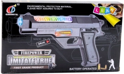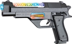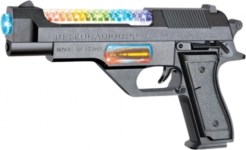 Zábavná hračka pistole na baterie přináší dětem hodiny akční zábavy. Po stisku spouště se rozsvítí barevná LED světla a ozvou se realistické zvuky výstřelů. Odolné kvalitní plastové provedení, pohyblivé prvky a kompaktní velikost 24 cm z ní dělají perfektní doplněk pro kreativní hry a rozvoj fantazie.
