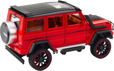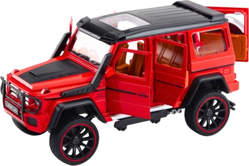 Kovový terénní model v měřítku 1:22 kombinuje odolné materiály a realistické provedení. Červená karoserie, pečlivé detaily a sportovní design umocňují dojem skutečného off-roadu, který skvěle vypadá doma i na cestách.